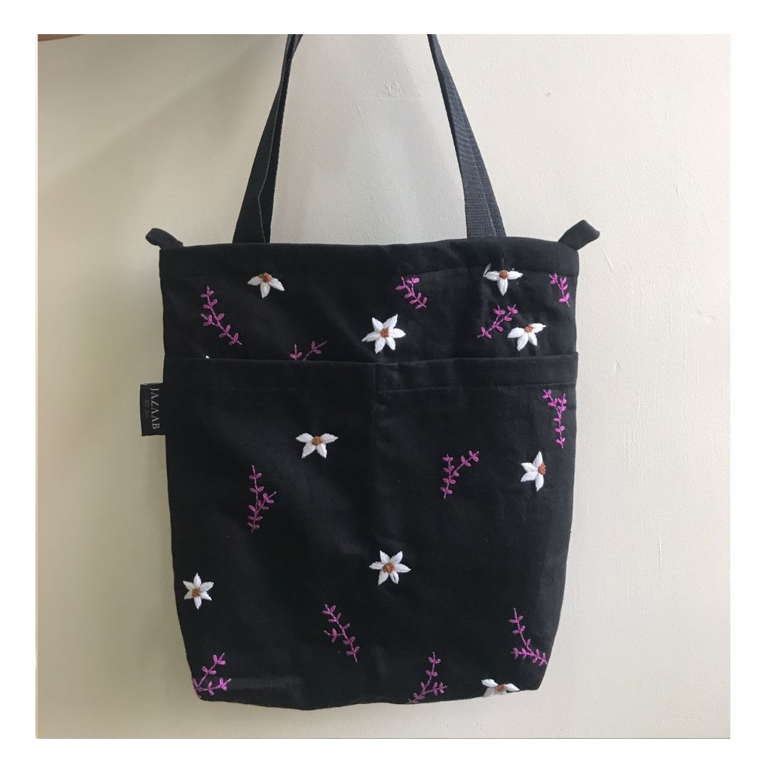 Elevate your style with our beloved Jazaab hand-embroidered tote, crafted with care . This stunning embroidery involves laying a trim or fiber on the surface of the fabric and stitching over it, creating a unique and exquisite design.